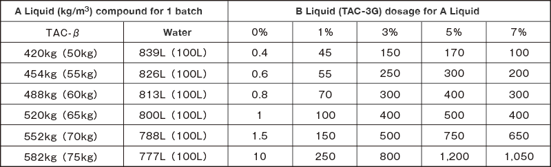 **Values in parentheses indicate the mix proportion per 1.0 m³ of Clay Shock.