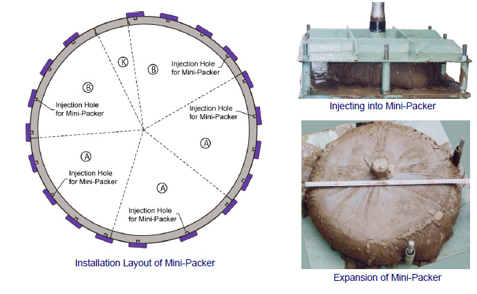 The Mini Packer is a backfill injection bag used for localized backfill injection. It prevents backfill grout from flowing around the outside of the shield machine and helps secure the segments in place.