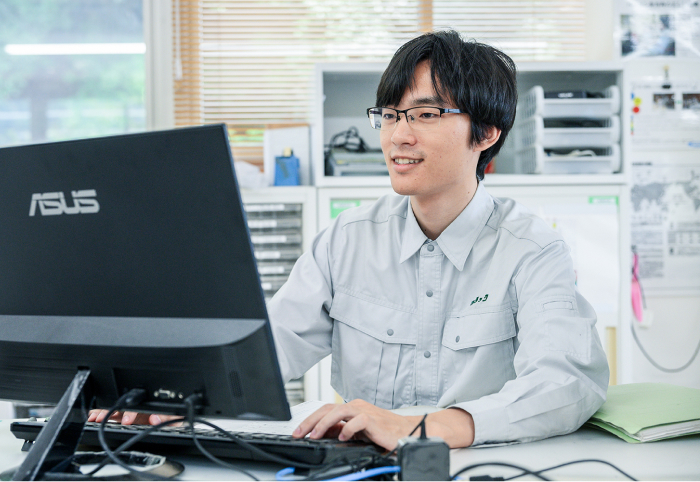 In the Design Department, we create design drawings that reflect the specific combination of machinery required for each project, along with customer requirements. We then program and adjust the equipment to ensure it operates according to plan. My primary responsibilities include preparing these programs and conducting test runs at the factory and on-site. Contributing to project progress and meeting our customers' expectations gives me a strong sense of fulfillment.