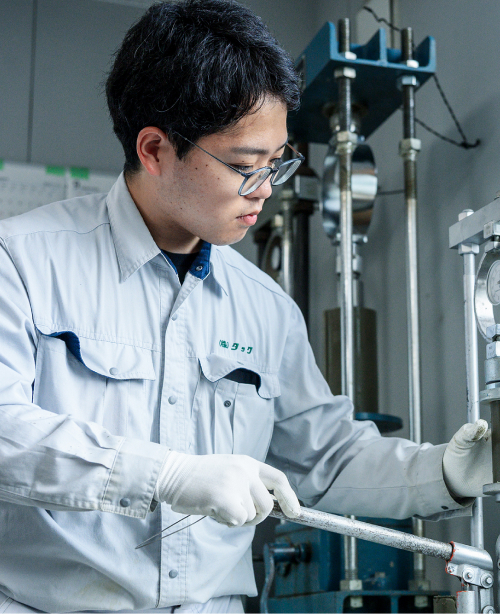 In the Technical Department, we develop materials, conduct quality control, and perform on-site property verification tests. What I value most in my work is carrying out each test and reviewing every piece of data with great care. Even the slightest variation can affect on-site construction, so I make a point of working with precision and attention to detail.