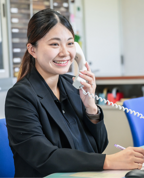 My primary responsibilities include receiving orders for materials and arranging deliveries. When a project site requests the materials they need, I coordinate with logistics companies and other suppliers to ensure everything is delivered properly. When I first joined, I struggled to memorize product names I had never heard before. I learned by asking senior colleagues for guidance and listening carefully to the phone calls they handled at the desk next to mine. Although I sometimes felt anxious, my desire to "become a contributing member as soon as possible" helped me push forward, and I feel that I have grown as a result.