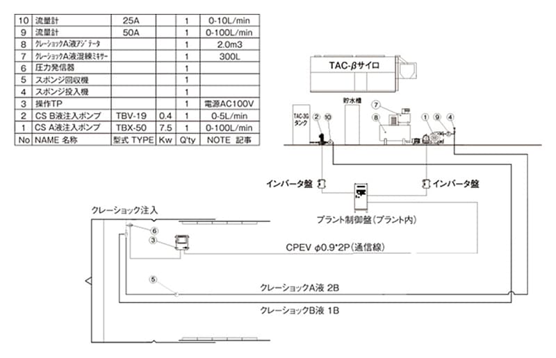 クレーショック注入に必要な設備とフロー図をご紹介します。
