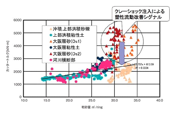 乾砂量とカッタートルクの関係