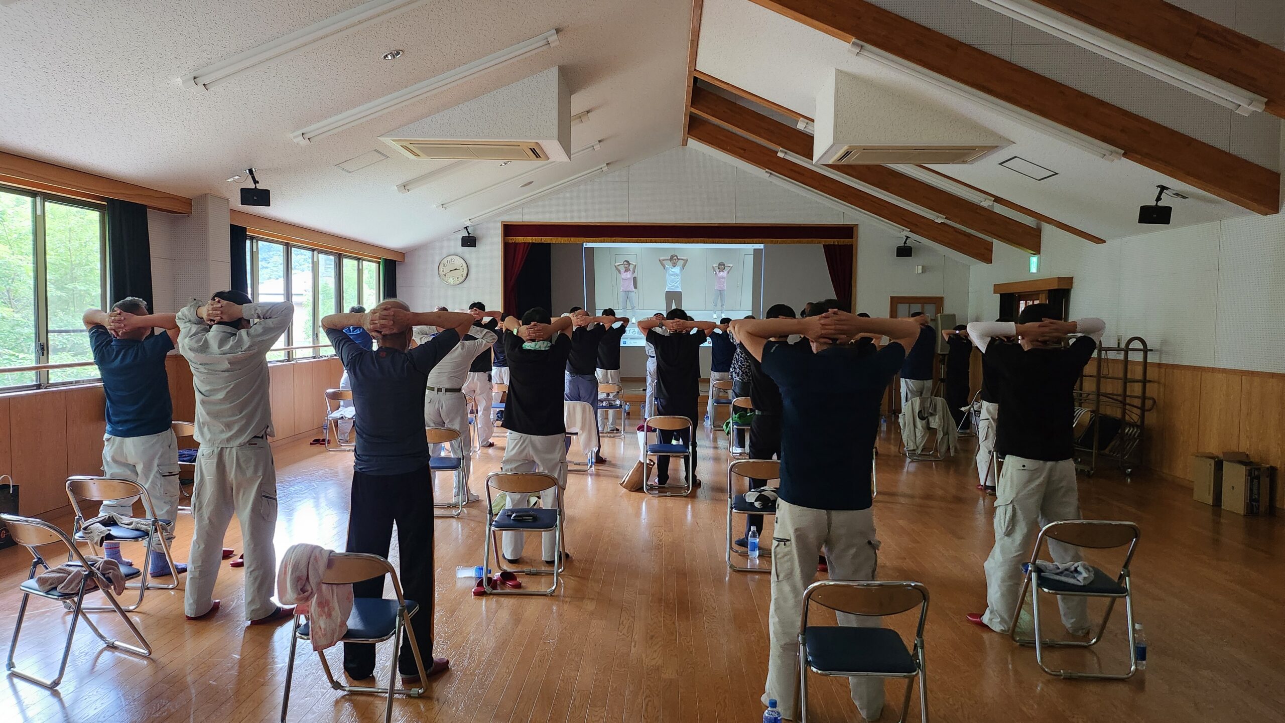 その後、腰痛予防のストレッチ、アクティブ体操を行いました。