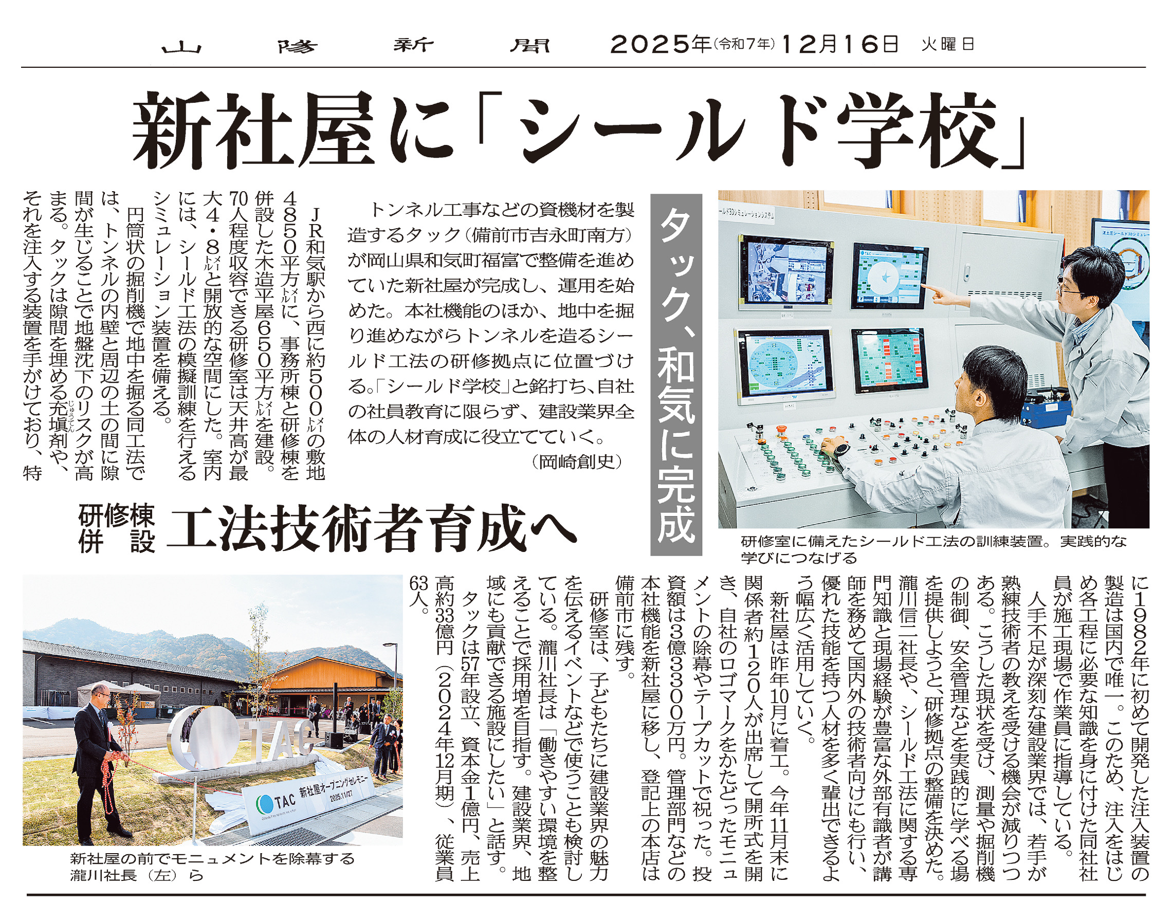 山陽新聞に『新社屋にシールド学校』記事が掲載されました
