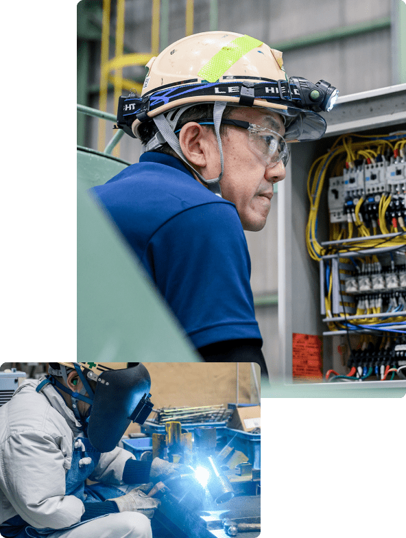 都市をつなぐトンネルや地下インフラ。タックの職人たちは、装置や設備の製造・整備・検査・改良を通して、正確で安全な施工を支えています。